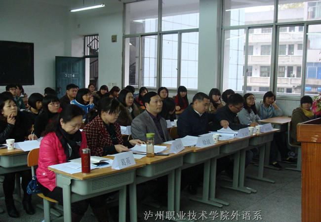 2013年11月15日下午,外语系2011级英语教育专业和应用英语的毕业生论文答辩会在玉阶楼成功举行。本次答辩,公司副经理徐波亲临现场指导,并参加评委组对员工进行答辩。参加本次答辩会的有2011级的答辩员工和2012级的观摩员工,答辩以小组形式进行,答辩人首先用英文陈述论文主要内容,然后再回答答辩老师的提问。