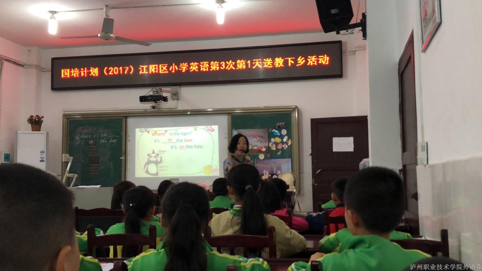 这次送教下乡活动是一次专门针对江阳区小学英语教学的一次教学推广活动,也是英语教育教研室结合优质专业建设开展的观摩活动,分别由来自泸师附小、城西实验小学以及泰安小学的三位优秀教师围绕“Where is the…?”展开精彩授课。参加送教下乡活动的老师是接受国家培训,多次公开献课,经验丰富的专业老师,他们各有特色的课堂呈现使英语教研室老师了解到小学英语教学中先进的教学理念,新颖的教学设计也为英语教育专业课程的开设、课程教学内容设定等提供了参考,同时对于英语教育专业的老师提高自己专业技能,准确把握小教教改方向有着很大的促进作用。
