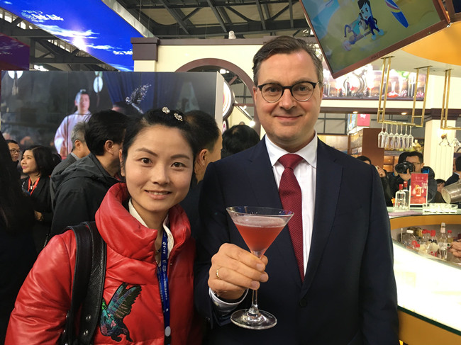 17-22号酒博会期间,孙晓曦、唐薇老师担任酒博会接待口译工作。两位老师担任了17号欢迎晚宴口译工作,孙晓曦老师还担任了18号国际精品馆的英文讲解和英国代表团欧斯曼子爵巡馆陪同口译工作。外语系还派出20名优秀员工志愿者为国内外嘉宾提供外语咨询、指引等服务工作。他们忙碌的身影成为酒博会一道亮丽的风景线,展现出外语系师生优秀的专业素质以及热心参与社会服务的志愿者精神。