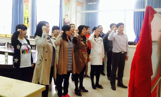 活动集中学习了党章、《准则》和《条例》,学习习近平总书记系列重要讲话精神,将信仰忠诚、严于律己、勇于担当内化于心、外化于行。刘永丽、陈芳、张俐三位党员代表重温了入党志愿书,对照入党誓词找标准、找差距。全体党员教师在党支部书记曾德贵的带领下,面对鲜红的党旗,庄严地举手宣誓,重温了入党誓词。