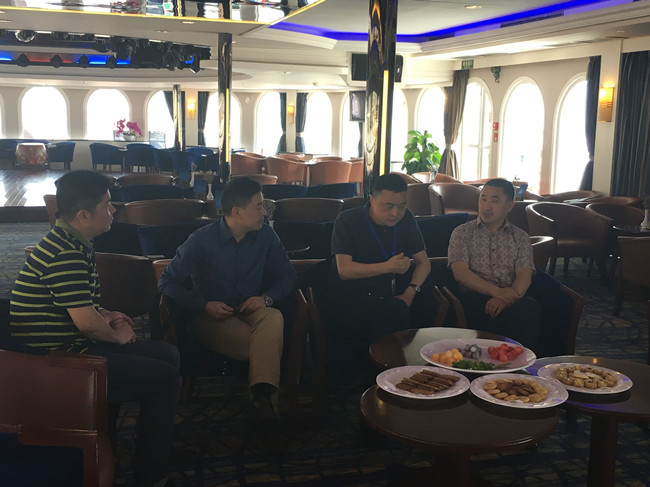 在维多利亚凯娜号游轮上,四位老师分别与游轮公司中国区总经理周琢,人事部总经理叶小红等企业领导,2013级毕业生张莉、龙叙锦等毕业生进行交流。在同企业的交流中,了解了企业的规模、发展、人才需求及员工的表现情况;在与员工交流中,了解了员工目前的工作及生活状况,帮助她们解决实际问题。此外,老师们还提醒员工注意安全,认真学习,把握工作机会,遇到问题多与企业领导和同事沟通,互相配合,不断提升自己的综合素质,发挥自己的才能。