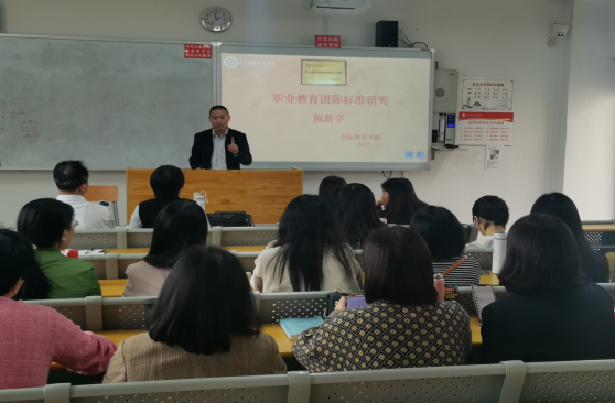 陈新宇教授是“职业教育国际标准研究团队”的负责人,他从职业教育国际标准的意义、职业教育国际标准面临问题、职业教育国际标准研究路径等方面给老师们进行详细的讲解。