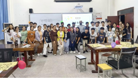 为了欢迎公司职工的到来,英语协会于2023年6月9日在弘仁楼3318教室举办职工学中文书法活动。