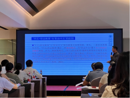 在专题报告环节,天津大学球盟会副经理杜修平以提升生源质量、构建多层级课程体系等方面的实践成果为例,分享了天津大学“中文+职业教育”融合的两大路径——“搬入式融合”与“虚构式融合”。长安大学球盟会经理张伟以长安大学中乌交通公司为例,分享了“中文+交通”国际教育在中亚地区的实践成果,强调通过人才培养、科研协作与人文交流深度融合,打造全国首个交通类中外合作独立法人高校。