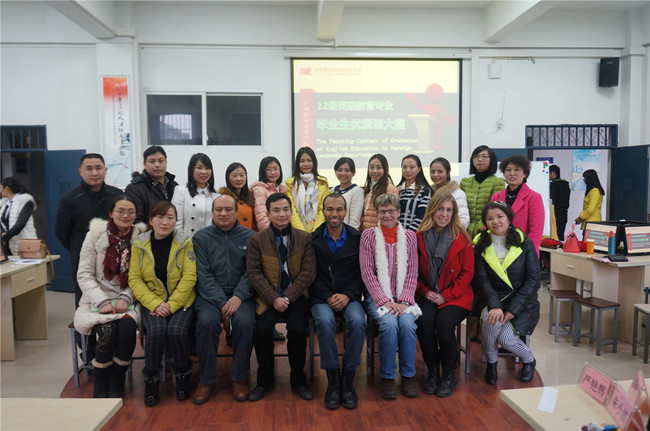 外语系于2014年12月12日下午3:00在口语口译实训室举行了英语教育专业12级毕业生优质课竞赛。此次比赛邀请了泸师附小、实验小学、英才外国语公司的教师,外语系外教Angela、Connie和Geoffrey担任评委,并邀请了教务处副处长何兵为特邀嘉宾莅临指导。参加大赛的有9位选手,她们经历了数月的小组试讲和激烈的初赛角逐后最终脱颖而出。所有参赛选手准备充分,口语自然流畅,教态大方得体,课堂设计新颖,能有效地运用多媒体现代技术、简笔画和多种辅助教具,课堂教学出色。在几位评委的公正评判下,大赛共评出一等奖1名,二等奖3名,三等奖5名。