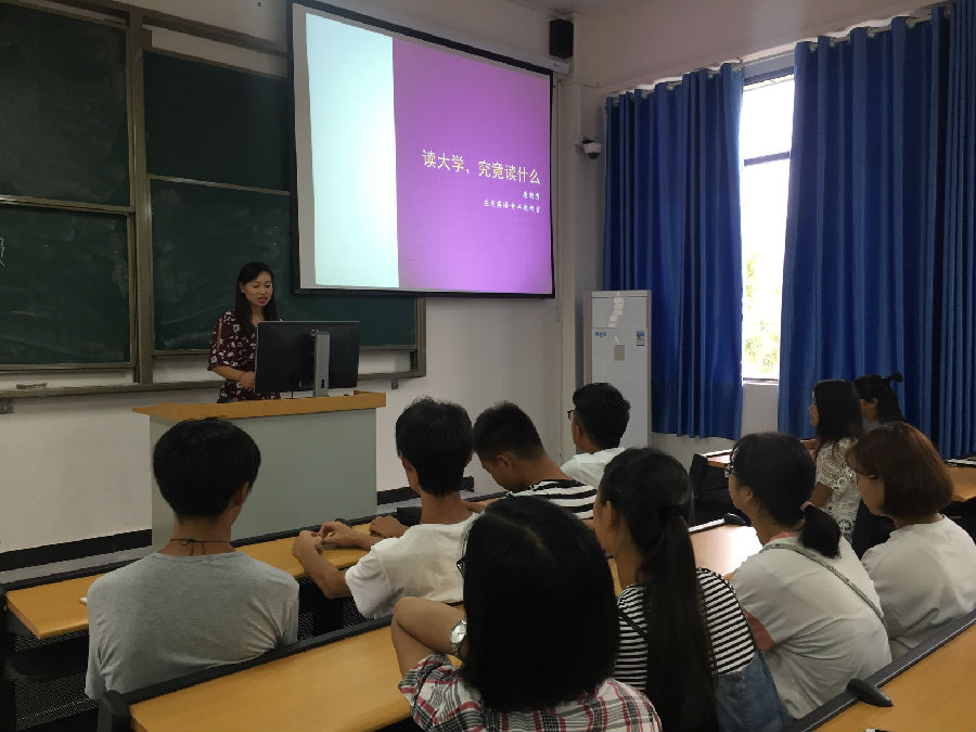 最后,应用英语专业教师唐朝秀对新生进行主题为“读大学,究竟读什么”的学习策略讲座,从良好习惯、独立人格、兴趣爱好、和谐相处、创新创造五个方面逐一展开。提出“先做人,再做事”,鼓励同学们要珍惜时光、努力学习。