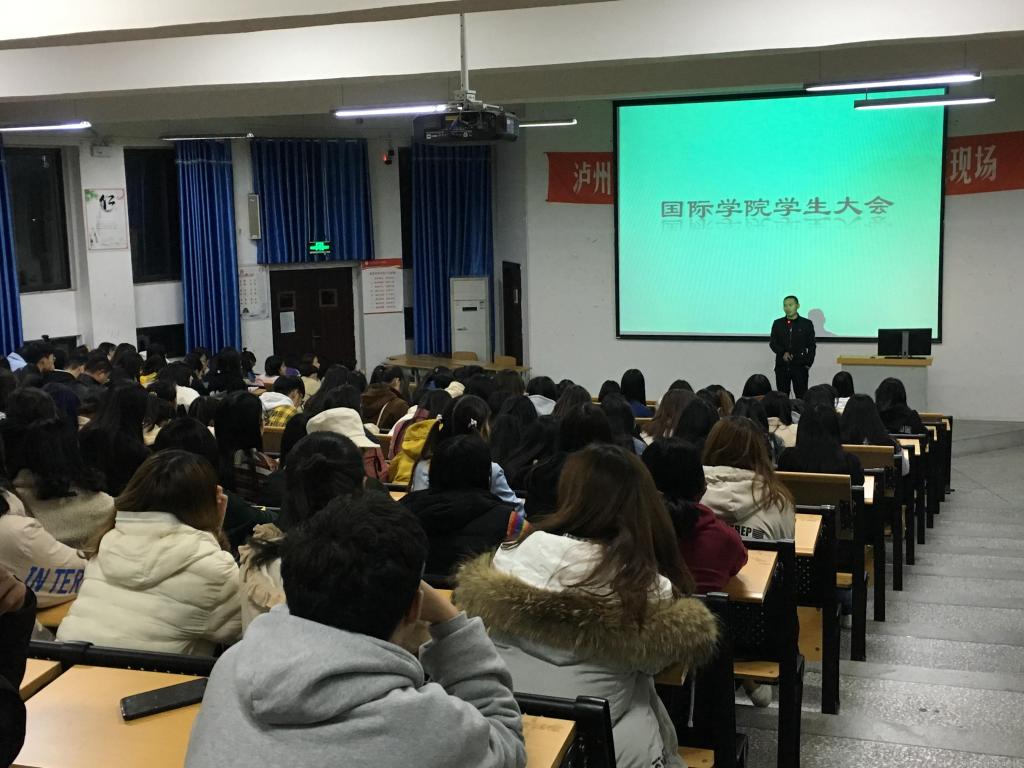 2019年11月18日19:00,国际公司组织全院员工在萧秋厅召开了“国际公司员工大会”。国际公司副经理陈新宇、党总支副书记周瑜、团总支书记吕毅及各年级辅导员参加了此次大会。大会围绕员工管理相关工作展开。