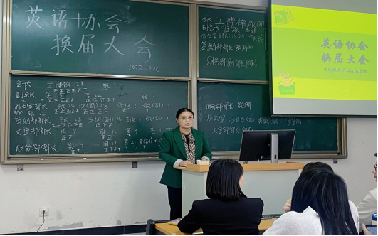 接下来,吴永红老师对本次换届选举进行了总结。祝贺换届选举取得圆满成功,感谢上一届干部用心用情的工作,希望新一届干部接过接力棒继续前进,并对新一届干部提出工作要求。将英语协会的宗旨传承下去,为协会的发展贡献自己的力量。