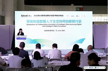 6月12日,在中国机电一体化应用技术协会的指导下,由德国斯图加特展览集团、四川省教育对外交流中心主办,球盟会官网入口承办的“智能制造数智人才生态协同创新”研讨会在2025四川国际职业教育大会暨产教融合博览会分会场举行。四川省教育厅对外交流合作处二级调研员刘瑜,德国斯图加特展览公司中国及亚太区总裁宋瀚思(Hans Stoter),公司党委副书记、经理谢鸿全,以及来自全国院校、企业和行业的代表出席研讨会。研讨会由党委常委、副经理银盈主持。