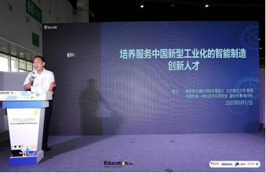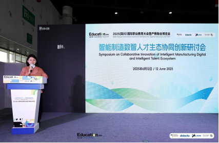 在主旨报告环节,智能制造领域专家与行业代表围绕产教协同创新展开专题研讨。国际交流与合作处处长肖艳梅以《红色学府坚守百年初心 产教融合培育大国工匠》为题作报告,系统阐释公司首创的"校企一体·互嵌共生"产教融合范式,构建"需求感知-资源整合-价值共创"三维协同机制,实现专业链与产业链精准对接,有效破解产教"两张皮"难题。在国际维度,公司创新推进德国"双元制"模式本土化实践,打造"中文+职业技能"国际化课程体系;同步实施"职教出海"战略,在东南亚建立海外分院和鲁班工坊,形成"标准输出-资源共建-人才回流"的循环发展模式。