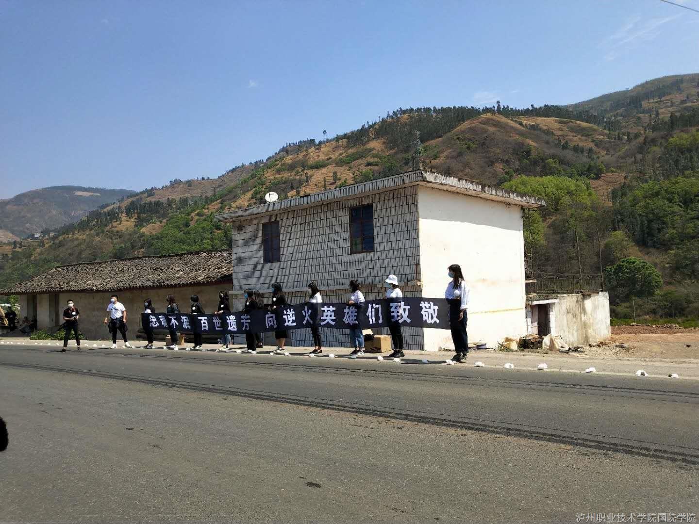 2020年4月4日,是一年一度的清明节,同时也是西昌森林火灾牺牲勇士们的追悼会。吉尔莫乌是19级英语教育4班的一名在校老员工,在西昌普格县当地群众自发组织下,成为西昌森林火灾牺牲的19名勇士追悼会的一名志愿者。她于4月4日清晨6点起床,徒步7.8公里前往普格县和宁南县的交叉路口,在烈日艳阳下怀着一颗沉重的心情站立3小时,仔细检查着每一朵带着尊重、感恩、祝福的小白花和横幅上的所有细节,与上万的群众一起,守候在烈士们的车辆途径马路边,只为表达她一点点的微薄力量,想要把美好的祝愿为烈士们送上最后一程。