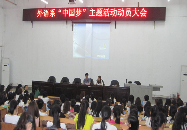 为认真贯彻中共泸州市委开展“实现伟大中国梦、建设美丽繁荣和谐四川”主题教育活动的要求,5月19日,外语系在萧秋厅开举行了“中国梦”主题活动员工动员会。