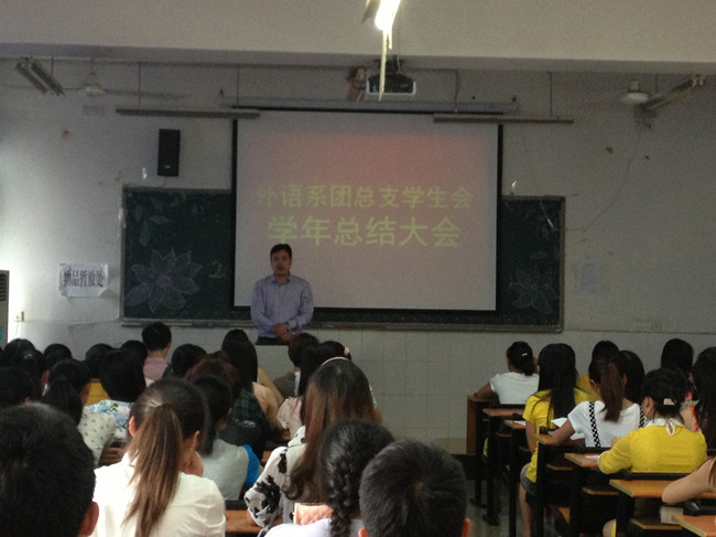 2014年5月29日下午16:30,外语系2013-2014学期团总支员工会学年总结大会在4415教室顺利召开。外语系党总支副书记曾德贵、团总支书记周瑜及外语系全体辅导员、团总支员工会所有成员参加了此次大会。
