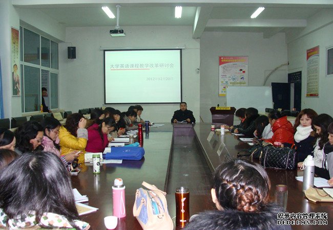 为总结本学期大学英语教学经验、提高全院大学英语教学质量,12月20日,外语系全体教师在国贸实训室召开大学英语改革研讨会。