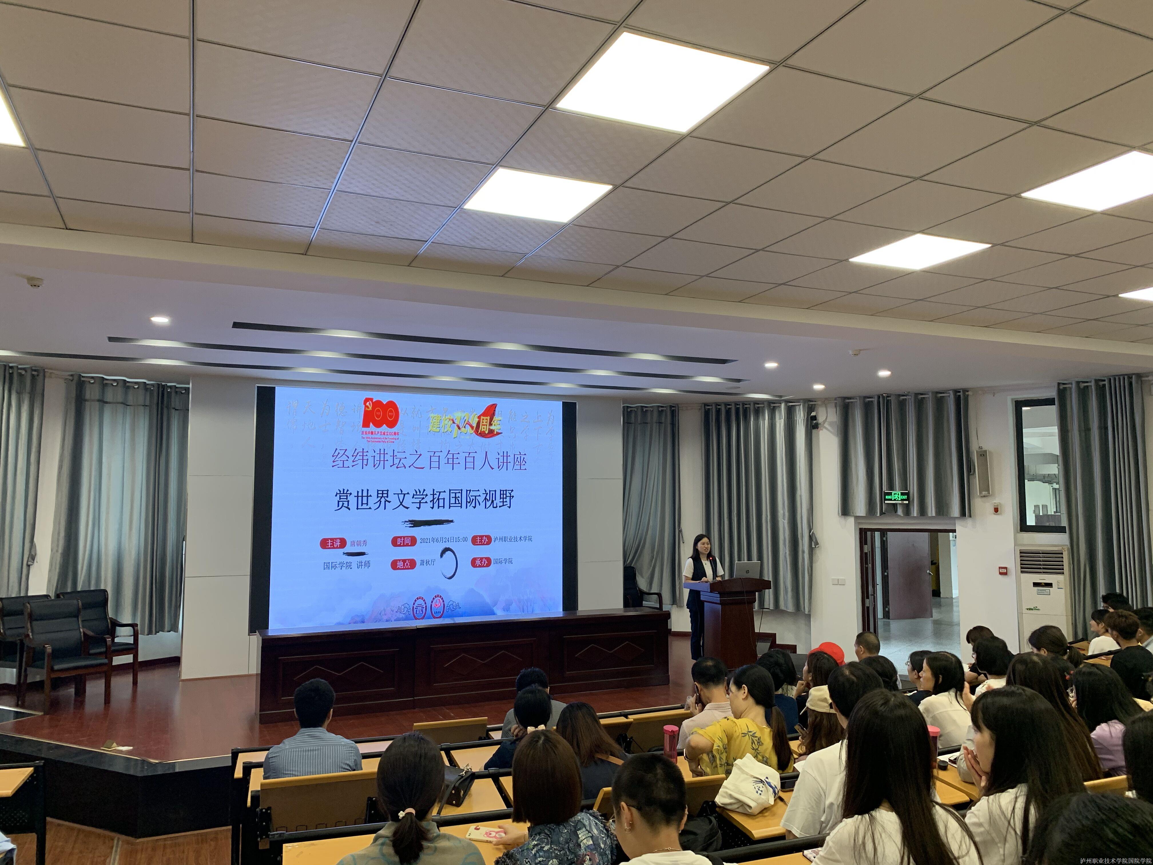为强化党史学习成果,向建党百年献礼,增强学术氛围,促进科研新风,6月24日下午3点,国际公司开展了经纬讲坛之百年百人讲坛系列讲座第二场。本次讲座,国际公司唐朝秀老师为全校师生开展了“赏世界文学,拓国际视野...[详细]
