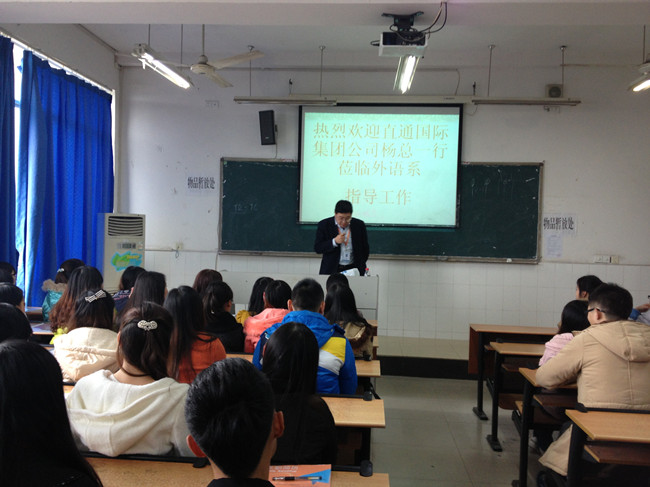 12月5日下午14:00,重庆直通国际集团杨总一行来到外语系,对外语系应用英语专业员工进行了专场招聘。外语系11级、12级和13级应用英语专业的所有员工参加了此次宣讲。 杨总首先以有趣的问题开场...[详细]