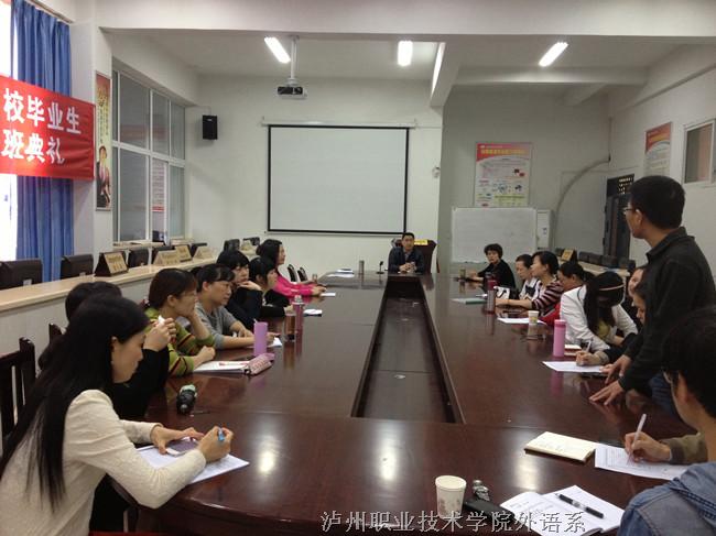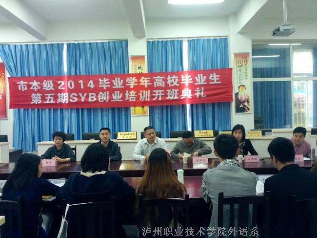 2014年4月21日上午9点,泸州市2014毕业年度高校毕业生第五期创业培训班开班典礼在外语系国际贸易实训室隆重举行。市就业局创业培训中心主任周卫以及公司培训中心主任刘创宇、外语系主任贺义辉、副主任张丽、党总支副...[详细]