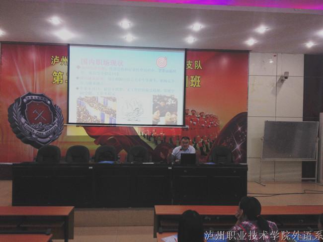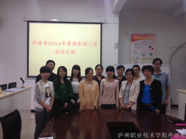 9月25日下午2:40,外语系全体教职工在5101实训室召开2014年暑期国培、省培及企业顶岗团队培训人员学习成果汇报分享会,系部11名参加培训的老师进行学习成果汇报。会上,外语系副主任张丽对2014年暑期赴澳大利亚TAFE学...[详细]