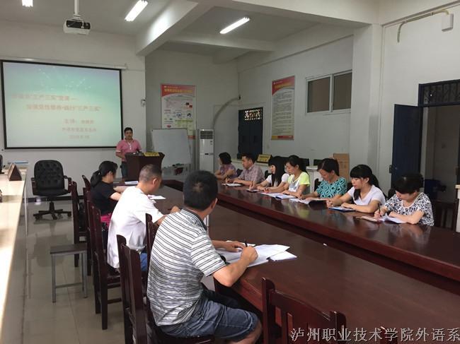 2015年6月19日下午,外语系党总支组织全体党员教师在5101教室开展“三严三实”党课及专题讨论会。外语系党支部书记曾德贵同志做“三严三实”党课讲座,曾书记结合“三严三实”提出的背景,就“三严三实”的内容、含义...[详细]
