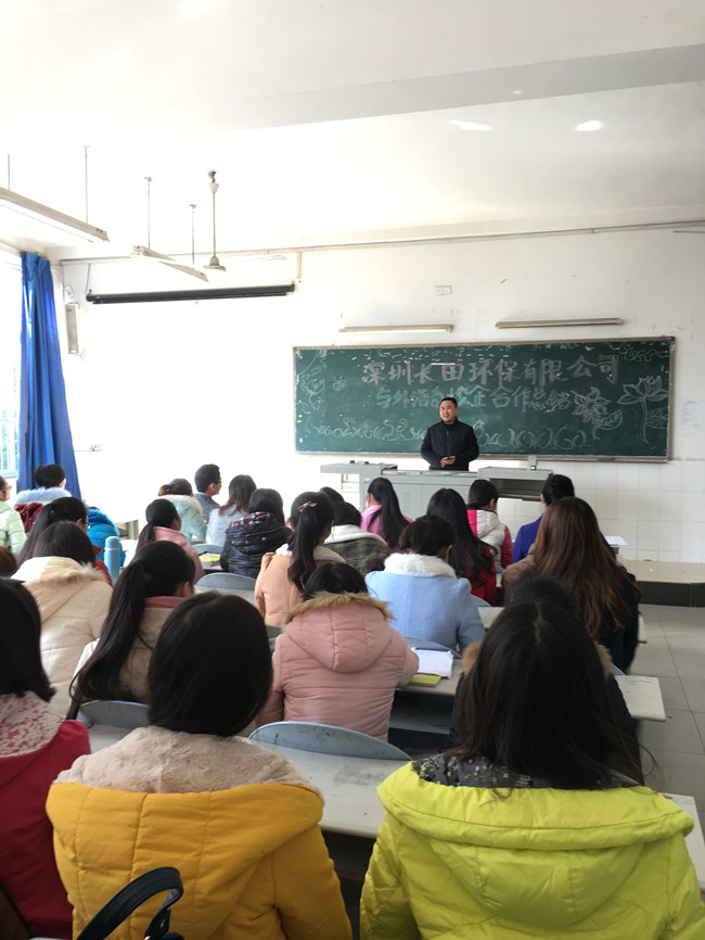 2015年12月21日,深圳长田环保有限公司与外语系校企合作总结会在4104教室召开。公司总经理李国顺、外语系主任贺义辉、党总支副书记曾德贵以及13级和14级应用英语专业全体同学参加了此次会议。会议由系副主任张丽主持...[详细]