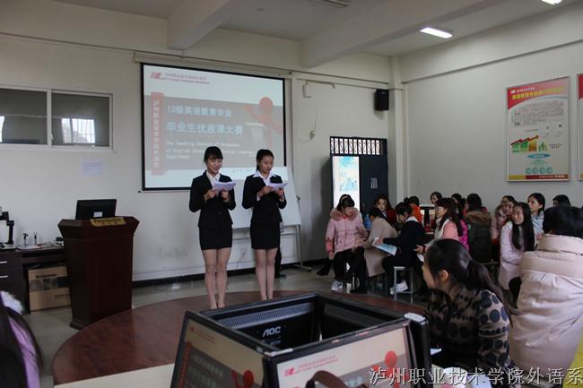 外语系于2015年12月25日下午3:00在口语口译实训室举行了英语教育专业13级毕业生优质课竞赛。此次比赛邀请了泸师附小、实验小学、梓潼路公司的教师和外教Jacqueline担任评委,并邀请了教务处处长潘绿萍莅临指导。参加...[详细]