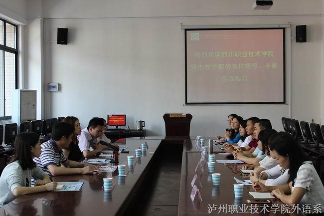 2016年9月30日上午,川职院网电教学部公共外语教研室一行五人到外语系调研交流。双方在国贸实训室进行了交流。出席交流会的有外语系系主任贺义辉、公共外语教研室主任刘永丽、英语教育教研室主任陈新宇、应用英语教研...[详细]