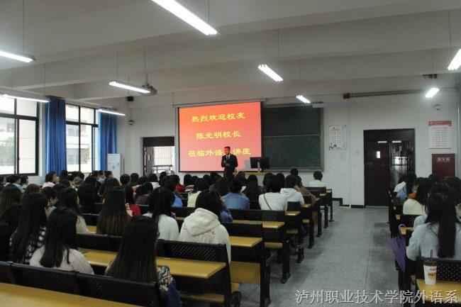 10月21日下午,在公司成立116周年之际,外语系诚邀公司优秀毕业员工泸州天立国际公司董事长陈光明莅临讲座,为外语系师生带来一场思想上的饕餮盛宴。系主任张丽,团总支书记周瑜,教研室主任陈新宇、刘永丽以及辅导员吕...[详细]