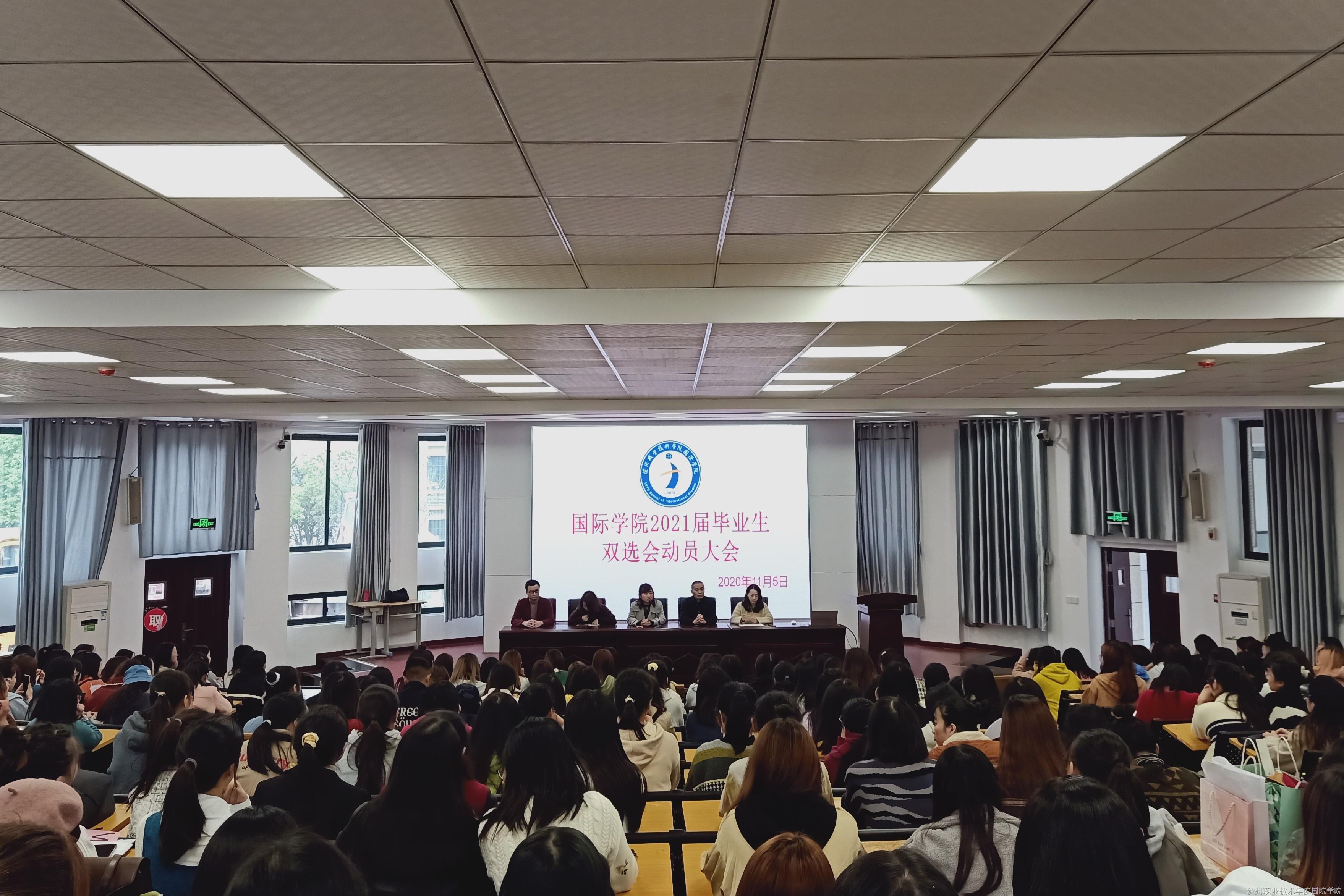 2020年11月5日下午14:00,国际公司2021届毕业生就业暨双选会动员大会在萧秋厅召开,国际公司领导班子成员及2021届毕业班辅导员及班导师出席了此次动员会。国际公司党总支书记兼经理银盈在大会讲话中强调,要认清就业...[详细]